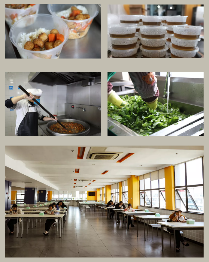 细心的工作人员提前制作大批办公遮挡板,为员工安心办公设立一道安全屏障,隔离病毒却不能隔离同事情谊,干净整洁的办公室比往日安静许多,响起的是敲击键盘的哒哒声,少了往日亲切交谈、你来我往的沟通——疫情背景下,话虽少但心却更近了。 复工第三关:用餐防护 食堂工作人员自己全面做好防控措施的同时,严把原材料关,保证饭菜制作全过程安全、卫生。午餐采取各楼层配餐方式,谢绝外部人员进入用餐、杜绝外卖送餐。在餐厅用餐者需二次量体温,隔位入座用餐。 防控在前,安全复产